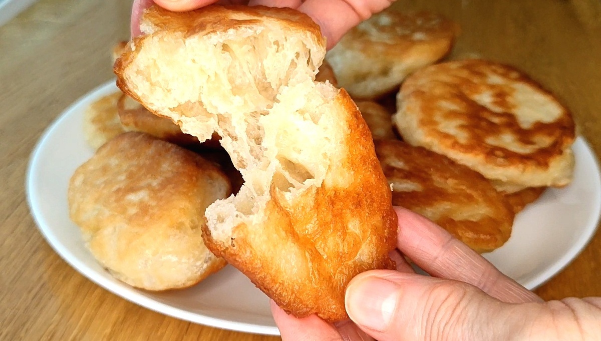 Дрожжевые оладьи, как в школьной столовой. Подают их с любым джемом, вареньем. Оладьи в меру сладкие, если любите более сладкие, добавьте еще сахар. Для приготовления вкусных дрожжевых оладий возьмем следующие продукты: Дрожжевые оладьи воздушные, пышные, в меру сладкие. Готовим без опары. В миску наливаем теплую воду, добавляем дрожжи, перемешиваем. Насыпаем соль, сахар. Добавляем просеянную муку, перемешиваем тесто, разбиваем комочки, тесто должно быть гладким, однородным. Накрываем миску с тестом, оставляем на час. Тесто должно подрасти, увеличиться в объеме в 2,5 – 3 раза. Прошло указанное время, можно жарить оладьи. В сковороду наливаем подсолнечное масло, разогреваем сковородку с маслом. Ложкой выкладываем тесто на хорошо разогретую сковородку. Жарим до румяного цвета с одной, потом с другой стороны. Готовьте с удовольствием! Постные оладьи тоже могут быть вкусными, воздушными, пышными. Главное, чтобы тесто хорошо подросло. Не надо торопиться. Важно, чтобы вода была теплой, мук