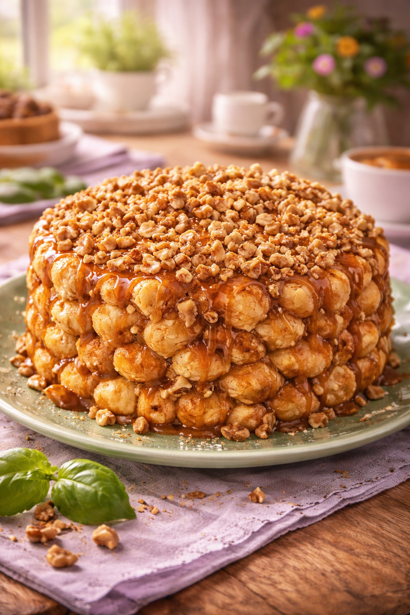 4. Финальный аккорд: выкладываем массу в форму, утрамбовываем и посыпаем измельченными орехами. Вуаля, машина времени