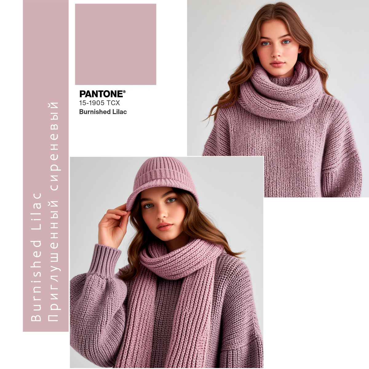 Весна на пороге, а вместе с ней — новая палитра модных оттенков. Делюсь с вами своими наблюдениями. И первый цвет, который хочется разглядывать подольше, — Burnished Lilac. Приглушенный сиреневый, слегка дымчатый, с сероватым и розовым подтоном и винтажным настроением. Знаете, бывают цвета, которые кричат: «Смотри на меня, я яркий!». А этот — шепчет. Он словно пришел к нам из старой бабушкиной шкатулки, где хранятся кружевные платочки и выцветшие фотографии. В нем есть легкая грустинка, ностальгия, но при этом он удивительно современный. Мохер или ангора — дымчатый сиреневый в мохере выглядит как легкое облако. Идеален для палантинов и объемных снудов, которые хочется накинуть на плечи прохладным вечером. Тонкий меринос или кашемир — для элегантных джемперов с ажурными вставками. Цвет будет звучать мягко и благородно. Хлопок с вискозой — для летних топов и легких кардиганов. Сиреневый в такой пряже приобретает легкий блеск и становится более нарядным. С чем сочетать: С серым (Vapor Bl