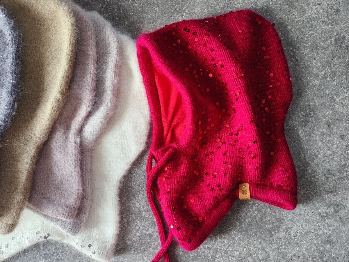 Капор с королевскими пайетками на окружность головы 56-59 см. #капорсамара #капорвязаный