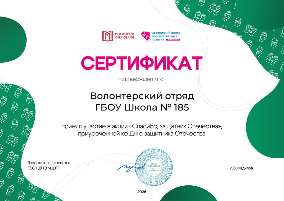 Волонтёрский отряд ГБОУ Школа №185 принял участие в патриотической акции «Спасибо, защитник Отечества!» — ребята написали письма
