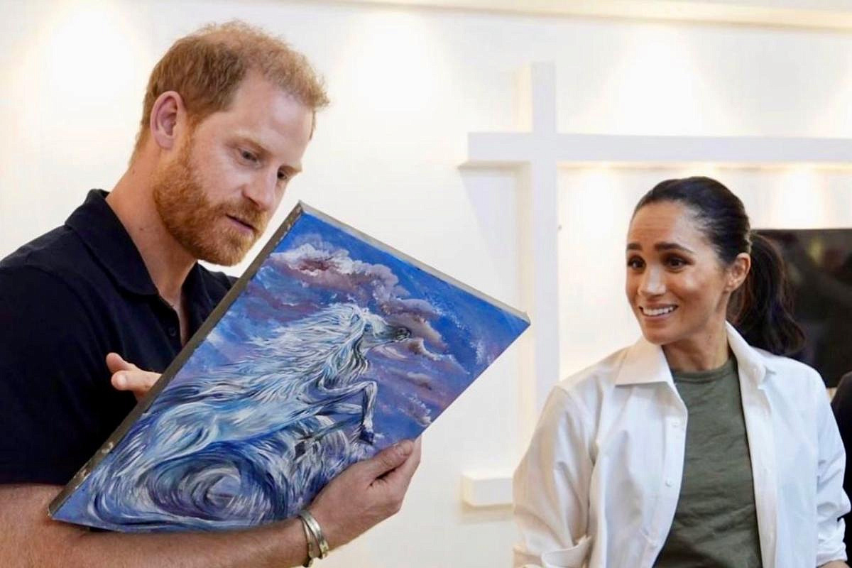 минимум украшений. Гарри — в тёмном поло, без галстука и без дистанции. Формат встречи — не протокольный, а живой: они