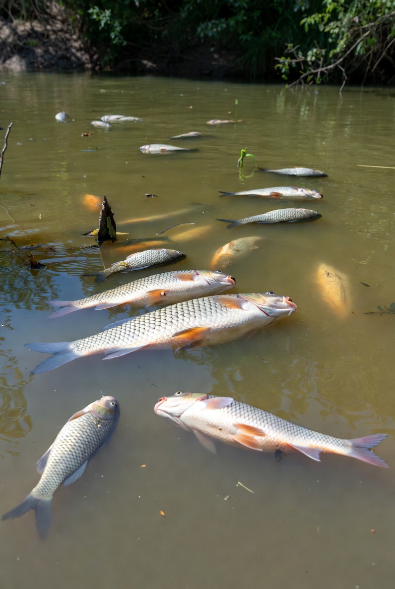 · Токсичные стоки: Тяжелые металлы (ртуть, свинец), нефтепродукты и фенолы делают воду ядовитой. Рыба либо гибнет мгновенно от отравления, либо медленно умирает, накапливая токсины. В такой воде рыба просто не может размножаться.