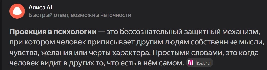 Полезно ВСЕМ, и коллегам и клиентам! Не думала, что позову вас к ИИ-психологу, но "если пьянку отменить невозможно, ее надо возглавить!" :) Нововведения в медицине и психологии неразрывно связаны с развитием технологий, то есть научно-технического прогресса. Итак, на сегодняшний день мы имеет ИИ-психологов! И я хочу поделиться, как я использую ИИ-психолога в распознавании своих проекций. Немного о проекциях. Что есть проекция: Остановимся на "приписывании". Именно проекция заставляет нас проваливаться в сложные, сильные эмоции! Не может Взрослого (я говорю о Субличности, там кроме Взрослого, есть еще Ребенок) мужчину до слез огорчить фраза его женщины, если он не провалился в травму! Значит, его триггернуло, и включилась проекция, когда, например, учительница унижает мальчика при всем классе. Мальчик давится от слез. Он травмирован. Поздравляем педагога, теперь у мальчика на всю жизнь триггер на вот эти слова, на вот эти интонации. И вот он вырастает, и в похожей ситуации ба-бам, бахну