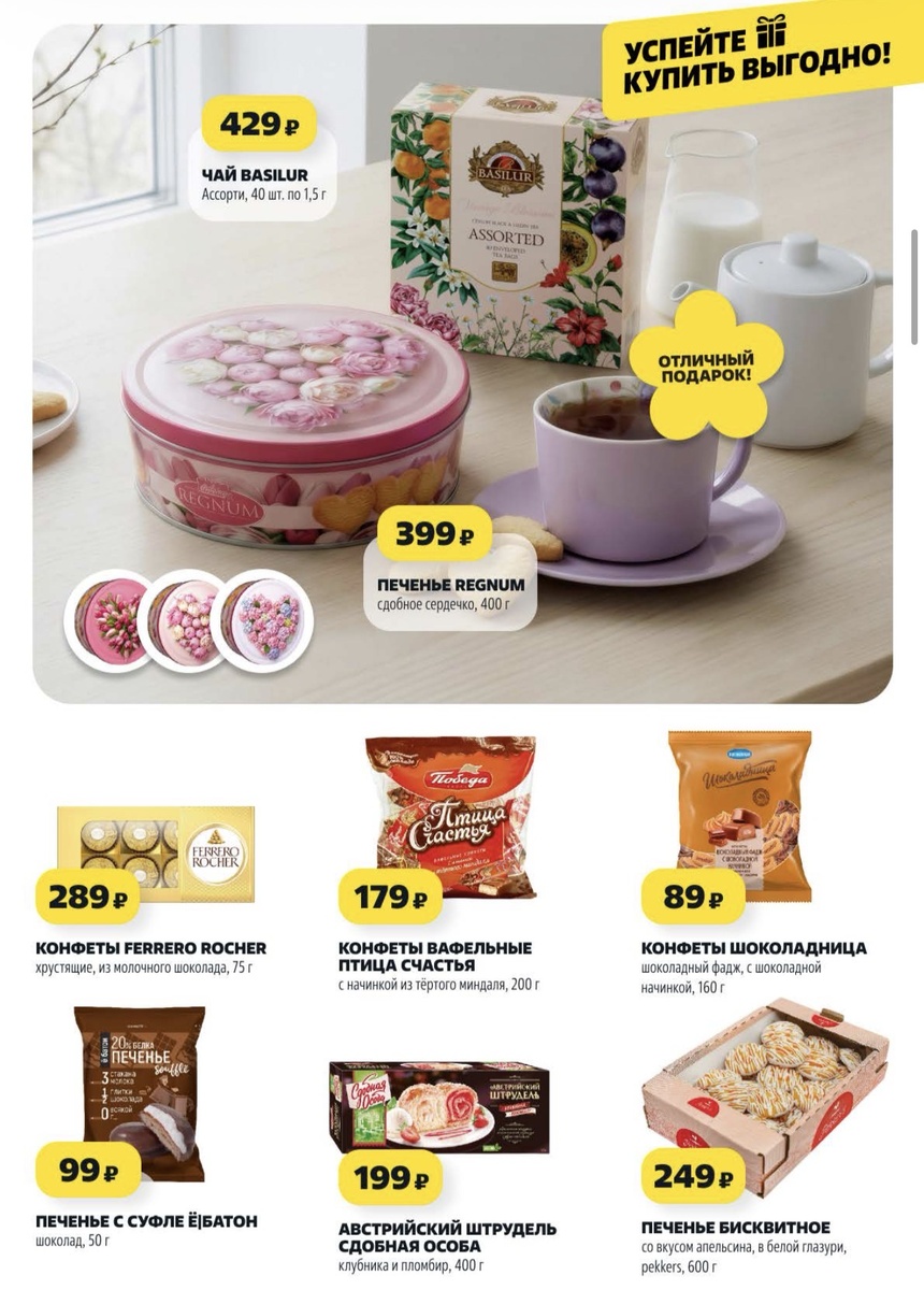 Тут и чайные наборы, большой выбор конфет и печенье 👇
