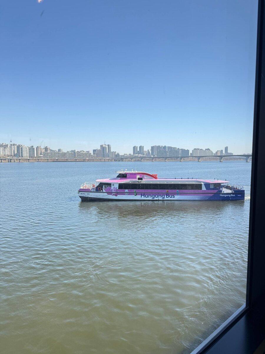 🥹 туда лучше приходить к 10, а то и раньше 😲 людей к 12 было много и в парке, и в кофейне все самые классные места были заняты, сначала сели на 2 ряду, а потом прям у окна освободилось 🙂 насчет этого автобуса, он откроется с 1 марта на полный путь, сейчас можно поехать только в обратную сторону, до апгуджона, каннама не едет, проезд 3,000 вон~ 160 рублей даже есть курс проезда на 30 дней, удобно в самой кофейне есть еще напитки с алкоголем😝 но был день и никто не пил.. мы взяли латте и тирамису, было очень вкусно, десерт большой, на двоих самое-то! так что шикарное место посидеть, поболтать, посмотреть на реку хан 👍
