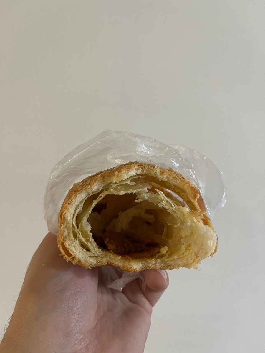 Купил круассан в кафе возле ННК, было написано с вареной сгущенкой, в итоге ее можно сказать и нету в начинке, экономят на всем 🥲
