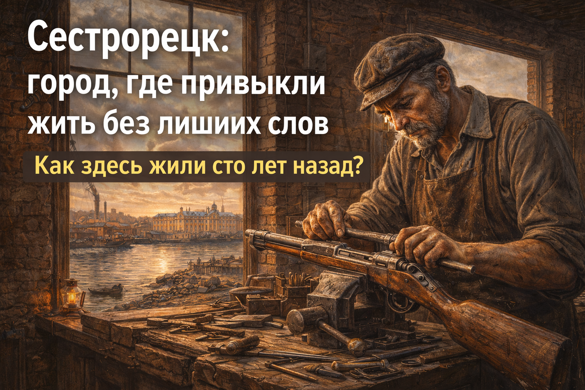 В Сестрорецке никогда не говорили громко о своей жизни. Здесь не было необходимости объяснять, зачем вставать затемно, почему руки постоянно пахнут металлом или древесиной, и отчего люди редко смотрят вдаль — чаще под ноги. Жизнь здесь шла не на показ, а на выносливость. Пока столица росла и меняла фасады, Сестрорецк жил рядом с водой и заводом, понимая простую вещь: если ты сегодня не сделаешь своё дело, завтра город просто остановится. Сегодня сюда приезжают за воздухом, соснами и Финским заливом. Но за этим спокойствием скрывается город, который долгие годы держался не на красоте, а на дисциплине и терпении обычных людей. Город, рождённый работой Сестрорецк появился не как курорт и не как украшение окрестностей Петербурга. Он вырос вокруг оружейного завода. Здесь не селились случайно. Сюда направляли тех, кто умел работать с металлом, выдерживал ритм и понимал цену ошибке. Одна неточная деталь — и оружие подведёт солдата. Поэтому местные мастера редко улыбались без причины. Город