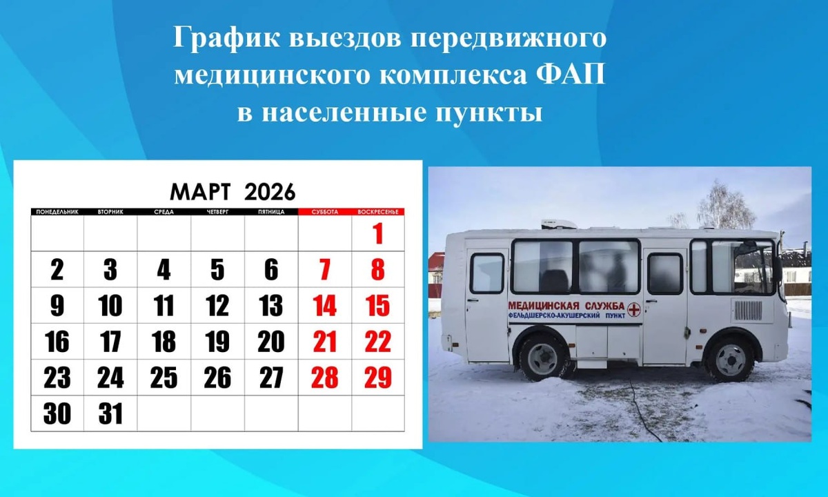 ✅Белебеевская ЦРБ опубликовала график выездов мобильного ФАПа по Белебеевскому району в марте 2026 г.