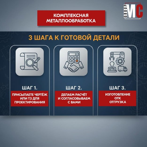 ⚙️ 3 шага к детали: как мы экономим ваше время Здравствуйте! Коротко о главном: как строится наша работа, если нужно получить качественные изделия из металла. 1️⃣ Вы присылаете запрос. Чертеж, эскиз на салфетке или просто говорите: «Нужен вал, как тот, сломанный». Мы принимаем любые форматы. 2️⃣ Технологи считают и предлагают. Сроки, цена, оптимальный метод обработки (токарка, фрезеровка, расточка, резка, гибка и пр.). Никаких «двойных тарифов». 3️⃣ Станки делают, ОТК проверяет. Вы получаете детали, которые стыкуются с первого раза. Пропустите шаг «поиск надежного подрядчика» — напишите нам в МАХ (+7 963 537 00 44) и отправьте задачу прямо сейчас.