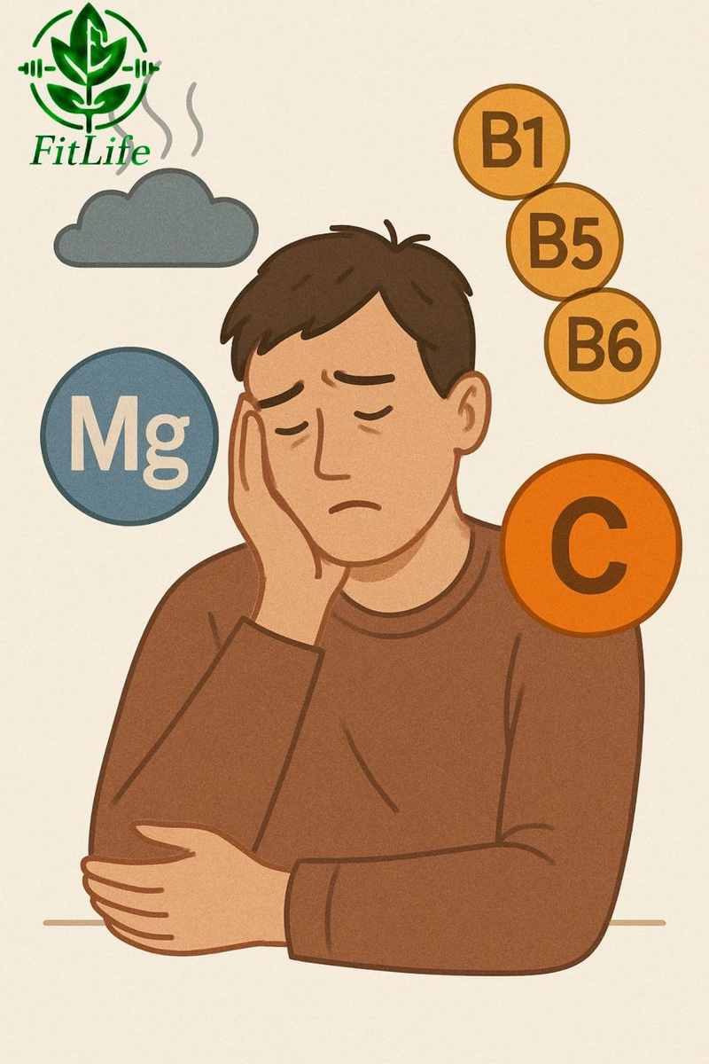 Мы привыкли думать о стрессе как об эмоциональной проблеме, но его влияние на тело намного глубже. Хроническое напряжение запускает процессы, которые истощают запасы важных нутриентов — даже если ты питаешься нормально. Когда ты в режиме «бей или беги», организм начинает интенсивно расходовать «топливо». Главные жертвы этого процесса: Он быстро расходуется при стрессе. И получается замкнутый круг: стресс тратит магний, а его дефицит усиливает тревожность и чувствительность к стрессу. Это топливо для нервной системы. Они участвуют в выработке энергии и нейромедиаторов. При стрессе их расход возрастает — появляются усталость, раздражительность и «туман» в голове. Он активно расходуется при стрессовых нагрузках. Почему он так важен Витамин C помогает надпочечникам синтезировать гормоны стресса (кортизол и адреналин). При стрессе потребность в нём растёт. Хронический стресс усиливает воспалительные процессы. Витамин C — мощный антиоксидант, который снижает окислительный стресс и защищает к