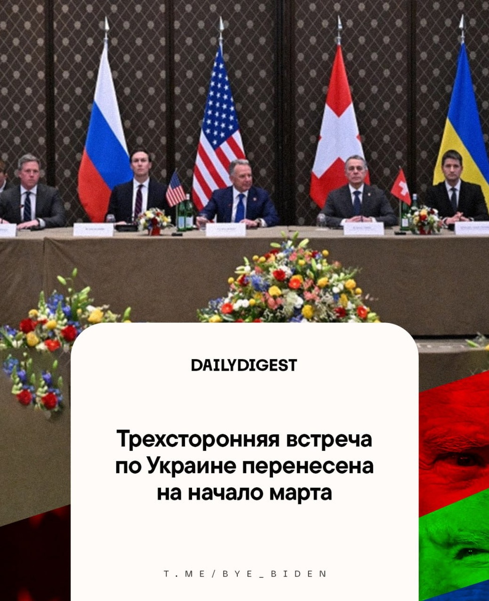 : 🔹Трехсторонняя встреча по Украине перенесена на начало марта. 🔹КНДР заявила о готовности к нормализации отношений с США. 🔹В Минобороны Британии сообщили об учениях войск для отправки на Украину. 🔹Украинцы стали покупать офицерские звания и должности для зачисления в тыл. 🔹МИД: РФ требует прекратить финансовую блокаду Кубы. 👍«БайБайден» в МАХ