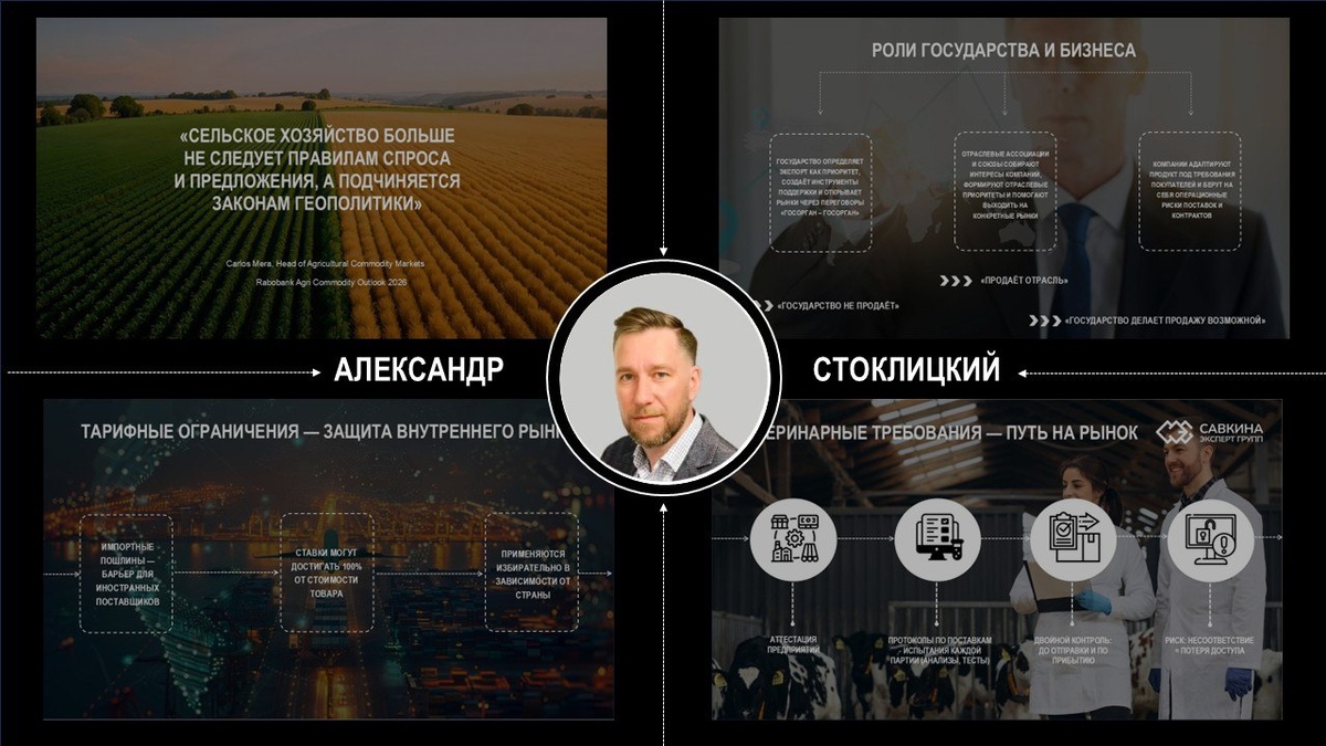 Мы продолжаем интенсив "От статиста до стратега", и сегодня на календаре 26 февраля, а это значит, что мы уже завершили первую тему блока, посвященного внешним рынкам. Вместе с Александром Стоклицким - экспертом по мировым рынкам - вчера говорили о том, как работают внешние ограничения, такие как санкции, тарифы и ветеринарные барьеры. Обсудили главное: ✅ Санкции - фильтр возможностей; ✅ Ветеринарные требования как скрытый тариф; ✅ Какие отрасли российского АПК наиболее чувствительны к ограничениям; ✅ Как строить стратегию выхода на внешние рынки в условиях турбулентности. Впереди ещё два насыщенных дня: 26 февраля в 11:00 🔹 Сравнение экспортных моделей: Бразилия, США, Китай, Австралия, Европа и Россия; 🔹 Сырьевая модель & переработка & интеллектуальный экспорт; 🔹 Что реально может «подхватить» Россия? 🔹 Как увязать экспортную стратегию с региональным развитием? 02 марта в 11:00 🔹 География российского экспорта: Китай, Индия, Вьетнам, Индонезия, Иран, MENA, Африка. 🔹 Что имен