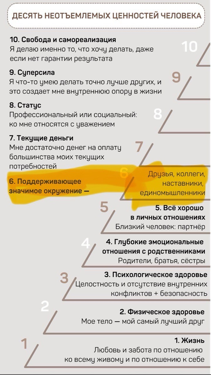 Друзья, коллеги, наставники, единомышленники... Но прежде чем говорить про шестую ценность, хочу поделиться сегодняшней консультацией. 🧐У меня есть постоянный клиент, очень интересный молодой человек (16 лет) — мы разбираем разные ситуации, которые его беспокоят. И сегодня было очень интересно. Запрос: «Хочу уйти из физ-мат класса. Устал». Начинаем распутывать. В чём проблема? — Надоело. Учителя постоянно по поводу и без повода ругаются, говорят: «Вы все...», «Ты...» и всё такое. А друзья из «простого» класса говорят: «Приходи к нам — у нас всё норм». 🔔И вот тут важный момент. Друзья зовут — это же хорошо? Это про поддержку. Но мы копнули глубже. Выяснили: за усталостью прячется проблема с самооценкой. Если плохие оценки или учитель гнобит — она падает. И мотивация исчезает. Знакомая история? Та самая оценочность, которую все мы в школе проходили (редкие счастливчики не в счёт). Чем закончилось? Консультация прошла хорошо, я очень рада. Артём решил, что остаётся в физ-мате.