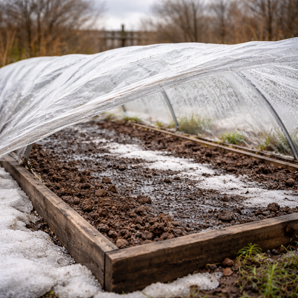 Кажется, что плёнка — это надёжная защита. Накрыли грядки осенью или ранней весной — и почва прогреется быстрее, сорняков меньше, влаги сохранится больше. Но в оттепель под плёнкой начинаются процессы, о которых редко задумываются. Снаружи всё выглядит спокойно: снег тает, воздух мягкий, солнце уже пригревает. А под прозрачным укрытием в это время создаётся совсем другой микроклимат. Разберёмся, что происходит с грядками под плёнкой в период зимних и ранневесенних оттепелей. Даже при +3…+5 °C на улице под прозрачной плёнкой может быть значительно теплее. Происходит следующее: • солнечные лучи проходят внутрь