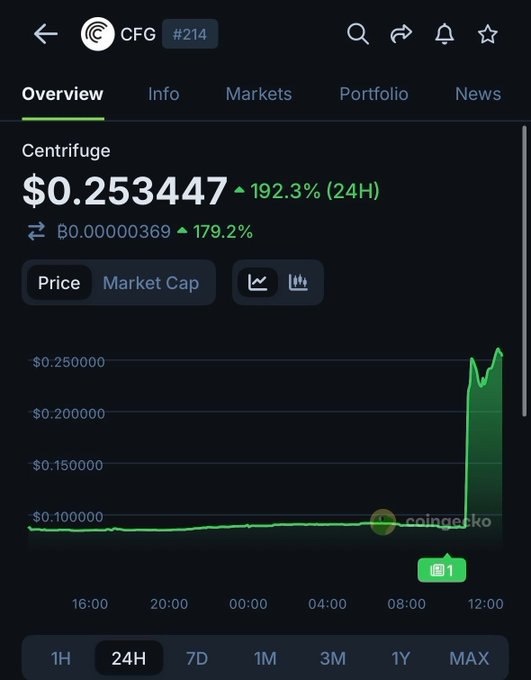 πΈΠ¦Π΅Π½Π° ΡΠΎΠΊΠ΅Π½Π° CFG Π²ΡΡΠΎΡΠ»Π° Π½Π° 192% ΠΏΠΎΡΠ»Π΅ Π»ΠΈΡΡΠΈΠ½Π³Π° Π½Π° Π±ΠΈΡΠΆΠ΅ Upbit.