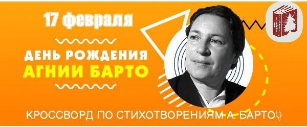 БАРТО👇👇👇 📅17 февраля 2026 года отмечается 120 лет со Дня рождения Агнии Львовны Барто. 📗Агния Барто - русская советская детская поэтесса, писательница, киносценарист, радиоведущая. Лауреат Сталинской премии второй степени и Ленинской премии. Ко дню рождения великой писательницы Центральная городская библиотека им. А. Н. Арцибашева предлагает КРОССВОРД по ее стихотворениям! Желаем успехов! svurcbs.ru/item/1075587 #Агния_Барто