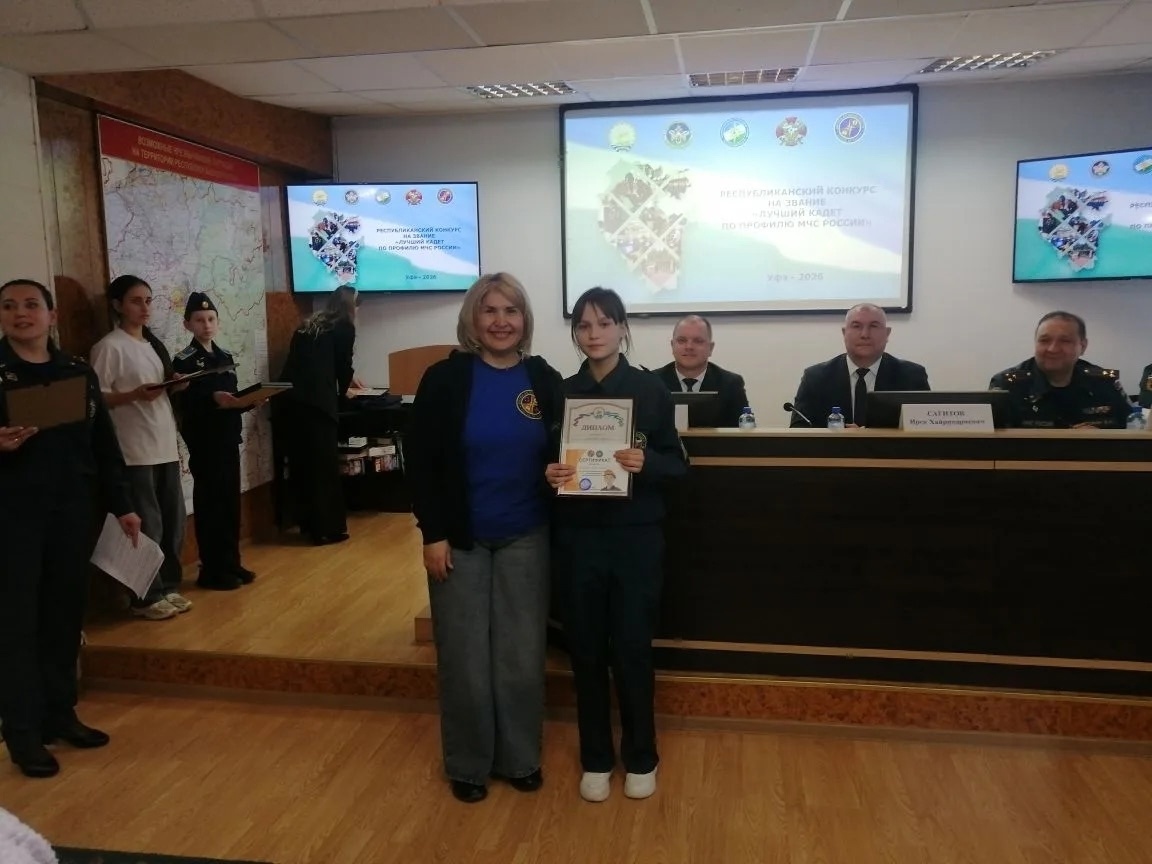 25 февраля в г.Уфа состоялся республиканский конкурс «Лучший кадет по профилю МЧС России».Красноключевскую школу представляла ученица 7Б класса Элина Максютова. Она достойно прошла все этапы, показав характер и упорство. 25 февраля в г.Уфа состоялся республиканский конкурс «Лучший кадет по профилю МЧС России». Конкурс уникальный - ни один другой субъект не проводит такого. В Башкортостане же ежегодный конкурс проходит уже в 11 раз. На базе 22-го пожарно-спасательного отряда и Учебно-методического центра собрались 34 лучших кадета со всей республики, чтобы побороться за победу. С напутственным словом к ребятам обратился заместитель начальника Главного управления Алексей Головко, пожелав им удачи и стойкости. Конкурс объединил три возрастные группы, и программа была насыщенной: конкурс красноречия, тесты, первая помощь, надевание костюма и противогаза, работа с огнетушителем, топография, стрельба, сборка автомата, пожарная полоса и даже вальс! ️Нашу школу представляла ученица 7Б класса Э