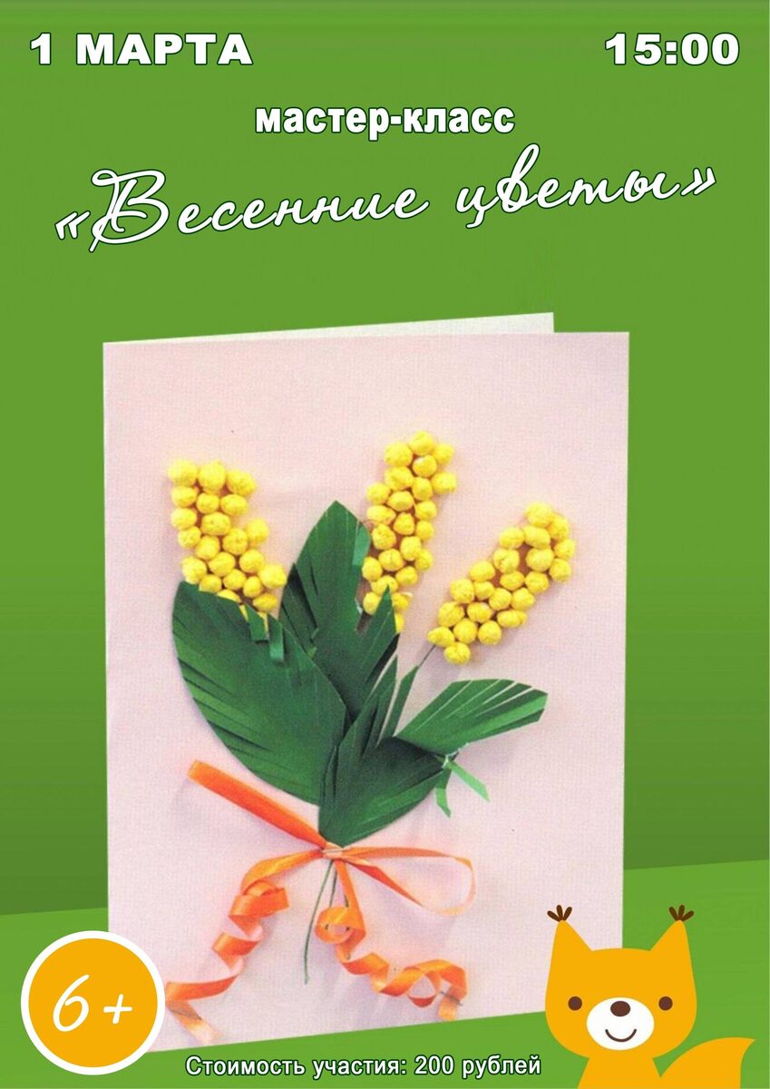 Приглашаем детей от 6 лет на творческий мастер-класс по созданию ярких неувядающих букетов из цветных салфеток и декоративных материалов. Участники научатся складывать цветы своими руками, развивая мелкую моторику и творческое мышление, чтобы создать Начало: 01 марта 2026 15:00 Стоимость: 200.0 руб. Адрес: г Омск, ул 5-я Рабочая, д 70а Организатор: https://vk.com/public176425736 1 марта в 15:00 приглашаем на мастер-класс «Весенние цветы»! 🌾 Почему именно 8 Марта принято дарить мимозу? Эта нежная желтая веточка символизирует приближение весны и женскую красоту. Традиция дарить мимозу родилась во Франции в начале XX века и с тех пор стала главным атрибутом Международного женского дня. А чтобы праздник стал ещё ярче, приглашаем детей от 6 лет вместе создать неувядающие... #ремесло_рукоделие Узнать подробности, адрес или записаться на событие.