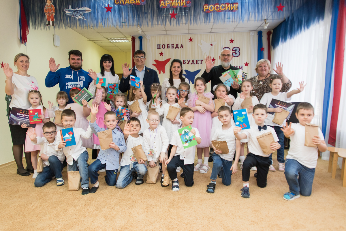 Региональный координатор партпроекта «Историческая память» Довран Аннаев вместе с зампредседателя Ассоциации ветеранов СВО Виталием Дорофеевым и молодогвардейцами передали ребятам угощения и уникальные патриотические раскраски «Кузбассовцы — незабытые герои, освободившие Украину». Раскраски оснащены технологией дополненной реальности, ребятам показали, как с помощью смартфона можно «оживить» картинки и узнать биографии 25 героев-кузбассовцев, участвовавших в освобождении Украины в годы Великой Отечественной войны. «Любовь к своей Родине и ее защитникам должна с самых ранних лет сопровождать ребенка. Тогда он вырастет достойным гражданином. И мне отрадно видеть, когда малыши, которые только учатся читать, уже стараются поддержать наших бойцов, за что им огромное спасибо», – сказал Довран Аннаев.