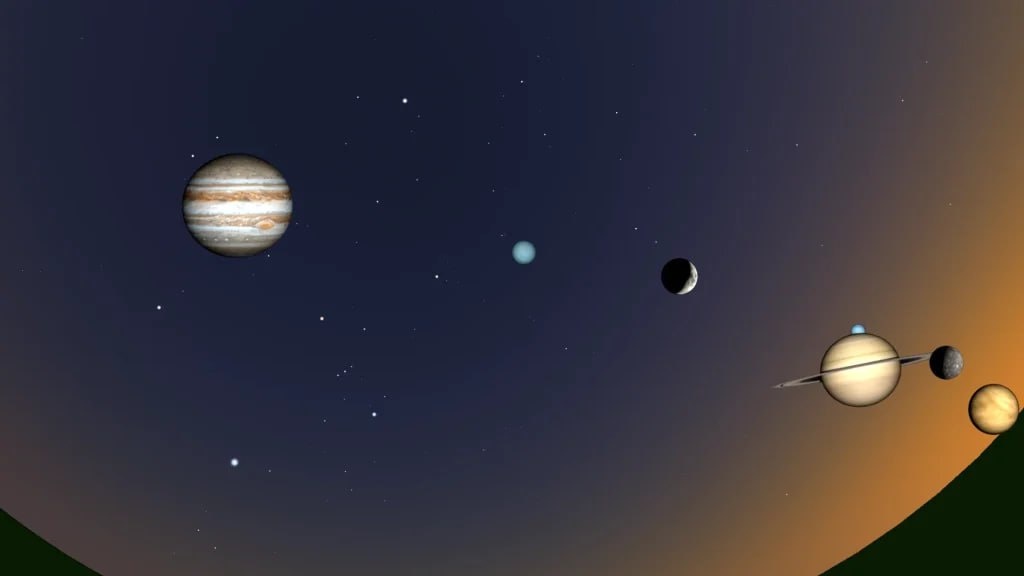 Merkuriy, Venera, Neptun, Saturn, Uran va Yupiter sayyoralari ishtirok etadigan noyob astronomik hodisani mamlakatning barcha hududlaridan kuzatsa bo‘ladi. @daryolive
