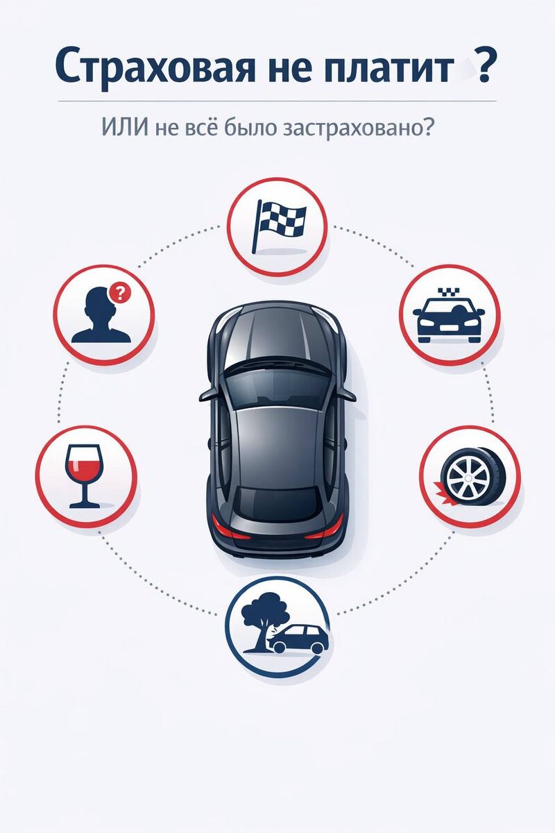 …» «У друзей была повреждена машина, а страховая отказала…» Слышали такое? Я — регулярно 👂 Да, к сожалению, такие случаи действительно бывают. Но давайте честно: это не означает, что все страховые компании — обманщики, а все клиенты — безвинные жертвы 🙅♀️🙅♂️ В страховании, как и в жизни, всё решают детали. Почему страховая может отказать по КАСКО? 🚗 Вот самые распространённые исключения 👇 🔧 Естественный износ автомобиля. 🏁 Использование авто не по назначению. Участие в гонках Работа в такси без соответствующей опции. Повреждения вне дорог общего пользования (например, в лесу) 🍷 Алкоголь или наркотическое опьянение водителя. ❗ За рулём был водитель, не вписанный в КАСКО . 😎 Ущерб причинён умышленно (и это доказано) 🛞 Повреждены покрышки, диски, колпаки — если они не застрахованы дополнительно. 📝 А ещё условия КАСКО отличаются в разных компаниях. Там, где одна страховая скажет «это исключение», другая признает это страховым случаем — всё зависит от программы страхования