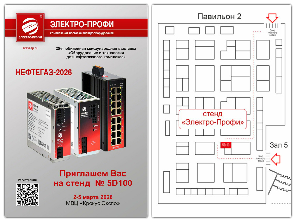 Компания «Электро-Профи» приглашает на крупнейшую 25-ю юбилейную международную выставку «Оборудование и технологии для нефтегазового комплекса» 2-5 марта 2026 в МВЦ «Крокус-Экспо». На нашем стенде № 5D100 в павильоне 2 зала 5 МВЦ «Крокус-Экспо» Вы сможете: Ждем вас на выставке «Нефтегаз-2026» и надеемся на плодотворное сотрудничество! 1. Дата проведения выставки: 2-5 марта 2026 г; 2. Место проведения выставки: МВЦ «Крокус-Экспо»; 3. Номер стенда «Электро-Профи» : № 5D100, павильон 2, зал 5; 4. Контакты: - Телефон: +7 (495) 921-03-58 - E-mail: msk@ep.ru