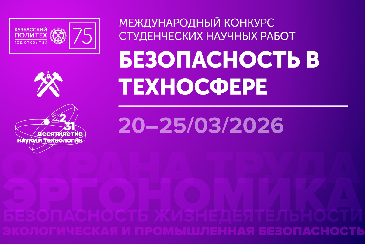 В Кузбасском государственном техническом университете имени Т.Ф. Горбачева стартует Международный конкурс студенческих научных работ «Безопасность в техносфере», посвященный 75-летию КузГТУ. Приглашаем студентов колледжей, техникумов и вузов (бакалавриат, магистратура, специалитет). Участвовать можно единолично или в составе авторского коллектива до 3 человек. Конкурс проводится на бесплатной основе. К участию принимаются работы по следующим научным направлениям: Номинации: От одного участника/авторского коллектива принимается одна научная работа в одной номинации с оригинальностью текста от 60 %, оформленная в соответствии с ГОСТ 7.32-2017. Работа должна быть выполнена на русском языке. Конкурс проводится в два этапа: Во второй этап конкурса проходит до 30 % от общего количества работ, в соответствии с набранными баллами и позицией в рейтинге по каждому научному направлению. При прохождении во второй тур участник получает персональное приглашение от организатора и программу этапа на э