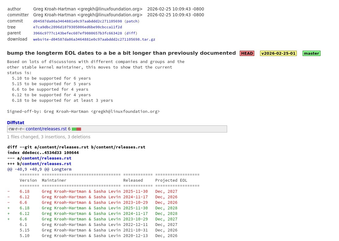 ) 📝 Кратко: Команда разработчиков ядра Linux сообщила о продлении сроков сопровождения для трёх поддерживаемых LTS-веток ядра Linux (с долгосрочной поддержкой). Читать далее 🔗 Читать оригинальную статью (ссылка) 📊 Источник: Habr ⏰ Время: 26.02.2026 05:52 📱 Другие каналы: 🪙 ВКрипту | 🎮 ВИгрухи | 🏎️ ВТачки | ✈️ ВТравелу #gadgets #гаджеты #технологии
