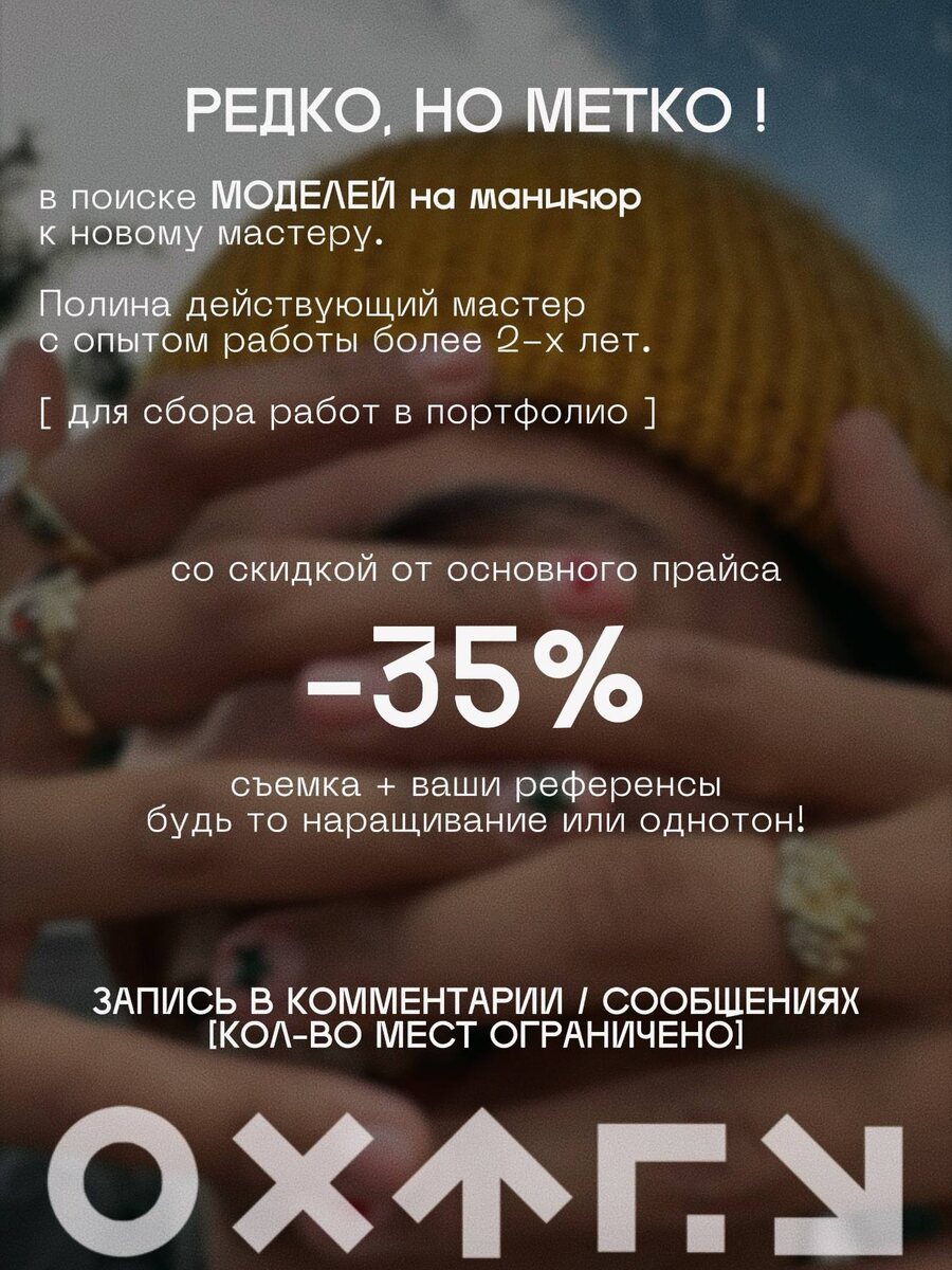 Мы в поиске моделей на маникюр к новому действующему мастеру – Полине, для сбора материалов в портфолио 🖤