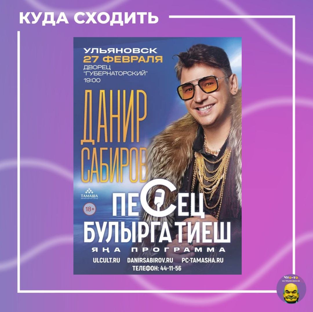 🎤 Вас ожидают десятки юмористических номеров, взрыв громкого смеха и незабываемые впечатления. Будет разыгран целый спектр ярких образов, от которых просто невозможно оторвать глаз. Живые выступления, зажигательные песни и танцы, весьма остроумные пародии! Данир Сабиров завоевал сердца зрителей своим юмором, харизмой и бесподобной энергетикой. Не упустите возможность окунуться в атмосферу незабываемого вечера, полного смеха и позитива. Данир Сабиров обещает, что концертный зал превратится в центр веселья и улыбок. Почувствуйте талант и дар комедии, ощутите радость встречи с любимым артистом! 📅Когда: 27 февраля в 19:00 📍Где: ДК "Губернаторский" (ул. Дворцовая 2/13) #куда_пойти_ул