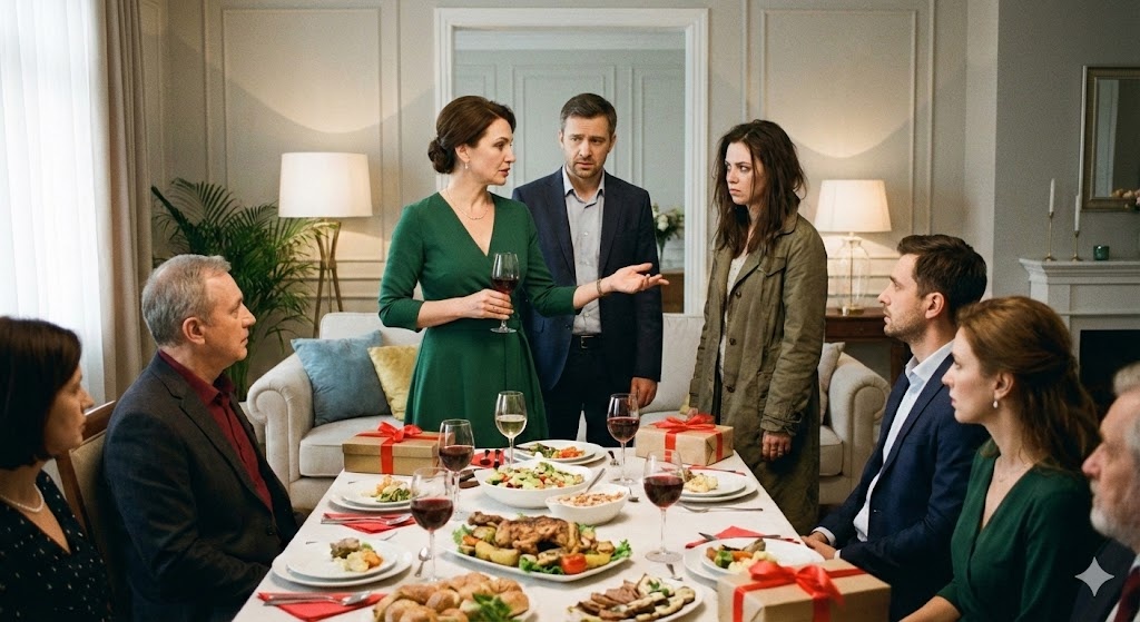 В комнате повисла такая тишина, что стало слышно, как в углу тикают старинные часы. Гости замерли с вилками в руках. Андрей густо покраснел.
