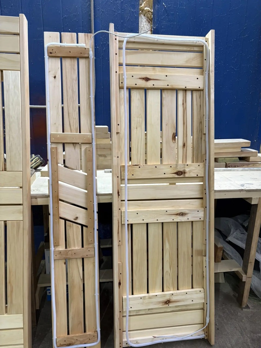 Теперь здесь пахнет не только деревом, но и будущим паром. Друзья, у нас небольшая пауза на стройке, так что снова работаем в цеху. А там, как вы помните, нас ждёт каркасная баня 2,4×6, про которую мы уже рассказывали ЗДЕСЬ. Сейчас взялись за самое «душевное» — полки в парной. И вот что получилось (пока в процессе, но уже хочется показать): Большой полок — парящий. Да, он крепится так, что кажется, будто парит в воздухе. Никаких громоздких ножек — только лёгкость и стиль. Под ним — светодиодная подсветка. Мягкий свет снизу создаёт атмосферу и помогает ориентироваться, когда парная уже наполнилась жаром и туманом. Спинка с подсветкой. Чтобы было удобно сидеть, облокотившись, и приятно глазу — тёплая световая линия вдоль спины. Маленький полок — выдвижной. Когда места мало, а попариться хочется большой компанией, выдвижная конструкция — спасение. Задвинул — и свободно, выдвинул — и всем хватило места. Всё это собираем из качественной древесины, обрабатываем, шлифуем, чтобы ни одной з