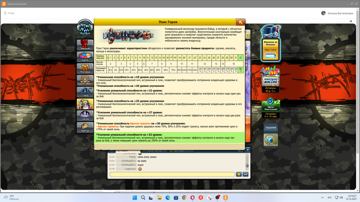 Мне понадобилось 524 рубинов, чтобы прокачать Пояс Героя с +31-ого уровня на +32-ого максимального уровня. В Новогодняя Миссия.