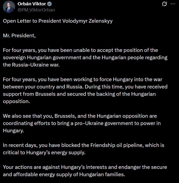 PM Orban's OPEN LETTER to Zelensky: