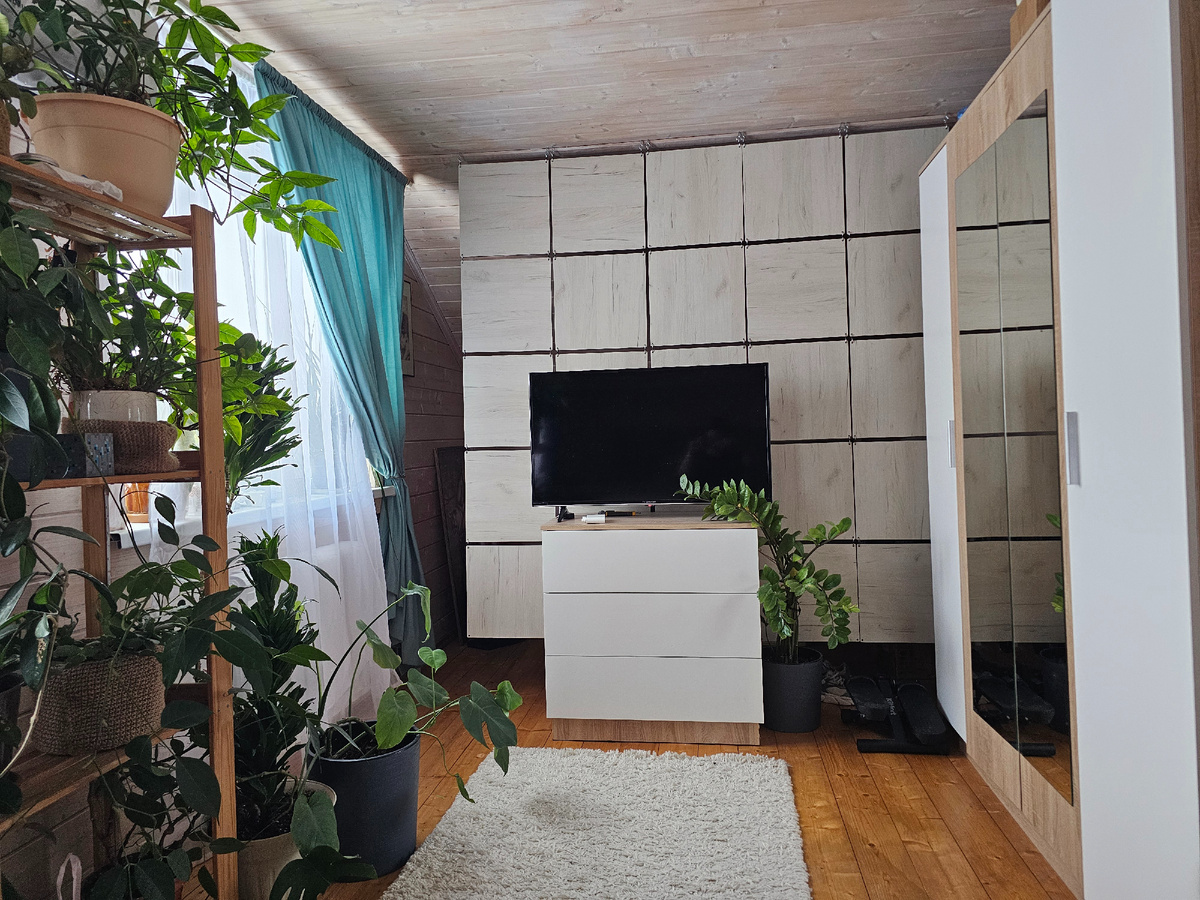 В январские выходные сделали небольшой ремонт в детской комнате+ наконец-то я придумала, как сделать небольшой уголок, в который можно спрятать бытовые мелочи (гладильную доску, сушилку, инструменты и т.д.)
