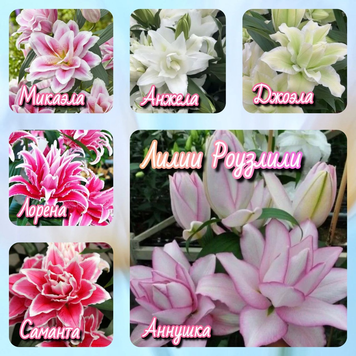 В 90-х голландцы превратили восточные лилии в цветы, похожие на пионы и розы. Махровые, без пыльцы, с тонким ароматом. В срезке стоят до двух недель. Сорта: 🤍 Ангела — 100–120 см, белая с гофрой, до 10 цв., с конца июня 💗 Аннушка — 90 см, белая с розовой каймой, до 22 см, без пыльцы 💜 Джоэла — 100 см, белая с лаймовым основанием, махровая 🌸 Лорена — 100 см, ярко-розовая с белой каймой, до 5 цв. ✨ Микаэла — 90–110 см, розовая с белой окантовкой, крап 🌺 Саманта — 110 см, розовая с белой каймой и зелёным горлом 🤍 Людвина — 110 см, белая с жёлтой сердцевиной, гофре Цена: от 195 ₽ за луковицу. --- 🛒 Где купить 📍 Садовый Центр «ПЛОДОРОДИЕ52» 📞 8-953-4-153-129 🎁 Скидка 15% при покупке от 3 луковиц любых лилий, бегоний, глоксиний или калл по промокоду #ЛуковкиКлубеньки2026 до 08.03.26. --- 🌿 На канале готовим разбор: с кем сажать лилии и как составлять композиции. Заходите 👉 🔗 https://vk.ru/im/channels/-233476456