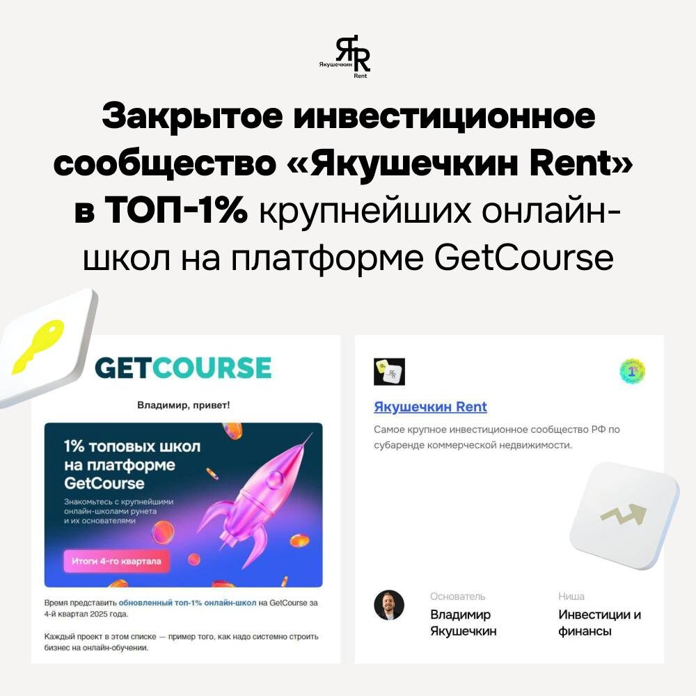 Наше закрытое инвестиционное сообщество по доходной недвижимости «Якушечкин Rent» в ТОП-1 по версии GetCourse