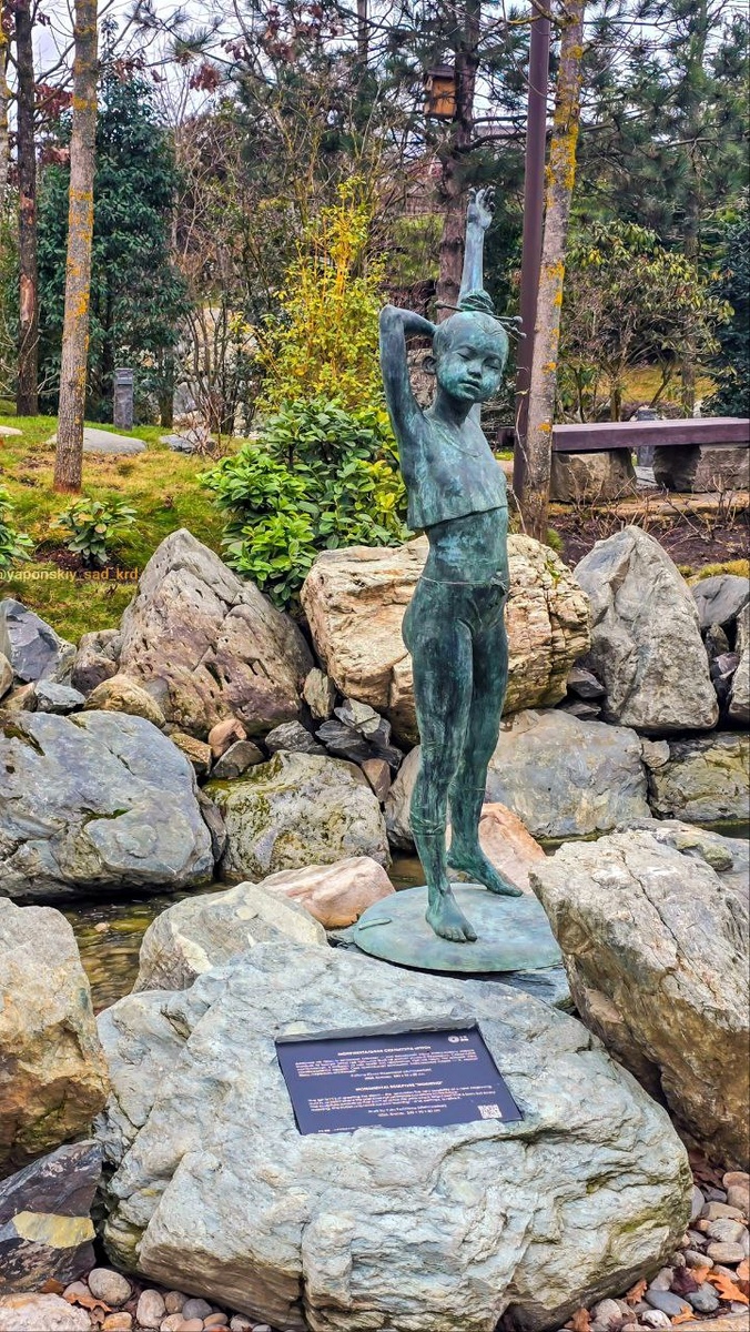 » 🔆 в японском саду парка. ⠀ 🔥⬇️ “Бронзовая девочка застыла на грани между ночью и рассветом —чистая, открытая, как сама душа в момент её пробуждения. Её фигура, устремлённая к солнцу, становится живой метафорой той невинной части нас, что каждый день⠀ рождается заново, ещё не тронутой тревогами и сомнениями.⠀ ⠀ В её поднятых руках — первозданная доверчивость к миру. Она раскрывается⠀на встречу утру, как цветок, ещё не знающий о возможных бурях. Это момент совершенной искренности, когда душа, подобно ребёнку, готова принять весь мир целиком — без страха и предубеждений.⠀ Девочка не просто встречает рассвет — она воплощает саму возможность нового начала, ту чистую точку, где прошлое ещё не диктует условий будущему.⠀ ⠀ Скульптура напоминает: в каждом из нас живёт эта нетронутая, светлая часть,⠀ что каждое утро пробуждается первой. Она приглашает вспомнить собственное⠀ «утро» — и, может быть, пережить его заново.”⠀ ⠀ Скульптор Юлия Федотова ⠀⬇️⬇️⬇️🈴️⬇️⬇️⬇️⠀ 📸@yaponskiy_sad_krd 4️⃣5️
