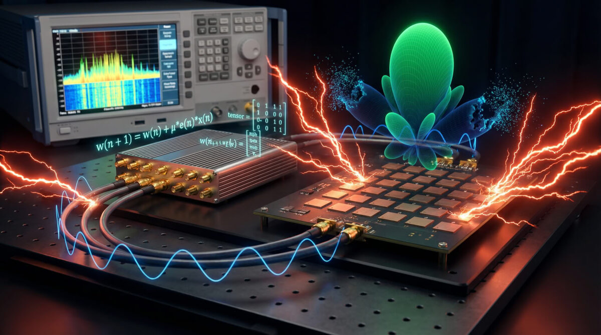 Пространственная фильтрация становится по-настоящему мощным инструментом тогда, когда она перестает быть статической и начинает перестраиваться вслед за изменяющейся помеховой обстановкой. Адаптивные антенные решетки решают эту задачу через итеративное вычисление весовых коэффициентов каждого канала по критерию максимального отношения сигнал/(шум+помеха). Весовые коэффициенты при этом представляют собой комплексные числа, задающие одновременно амплитуду и фазу вклада каждого элемента в суммарный выходной сигнал.