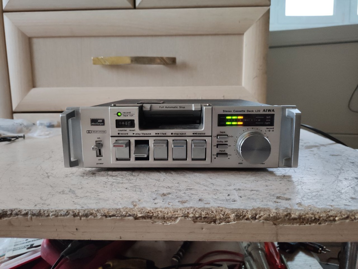 Микро айва из одноимённой мини системы и такое то же встречается, но редко. Остальные компоненты системы на обслуживание к сожалению не попали, а вот дека приехала. Далее всё по классике, шиномонтажка, смазка, подстройка.По компоновке это конечно больше напоминает авто магнитолу, ну а как иначе впихнуть, не впихуемое в такой форм фактор. Да, внутри тесно даже жгутам проводов, но всё это тем не менее работает и очень даже хорошо. 👍 И звук у неё кстати вполне солидный, как у полноразмерных старших собратьев, жаль всю систему не удалось заполучить, а в её составе ещё Aiwa Micro System Model 22 is composed of: Aiwa SA-C22 Preamplifier Aiwa SA-P22 Stereo Power Amplifier Aiwa ST-R22 2-Band Stereo Tuner Aiwa SD-L22 Stereo Cassette Tape Deck Aiwa SC-E11 Stereo Speaker System Total Set-Price: 2000,-- DM Любителям экзотики рекомендуется, микро система из 1979-го, на мой взгляд гораздо интереснее чем музыкальные плиты. 😎 #aiwa #minisystem #stereoamplifier #stereosound #musiccenter