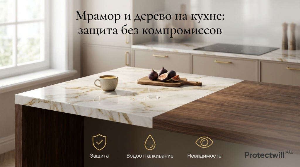 В 2026 году пользоваться «голым» мрамором на кухне — это неоправданный риск. Вы можете бесконечно подбирать щадящие средства, но одна ошибка клининга уничтожит внешний вид кухни за полмиллиона.