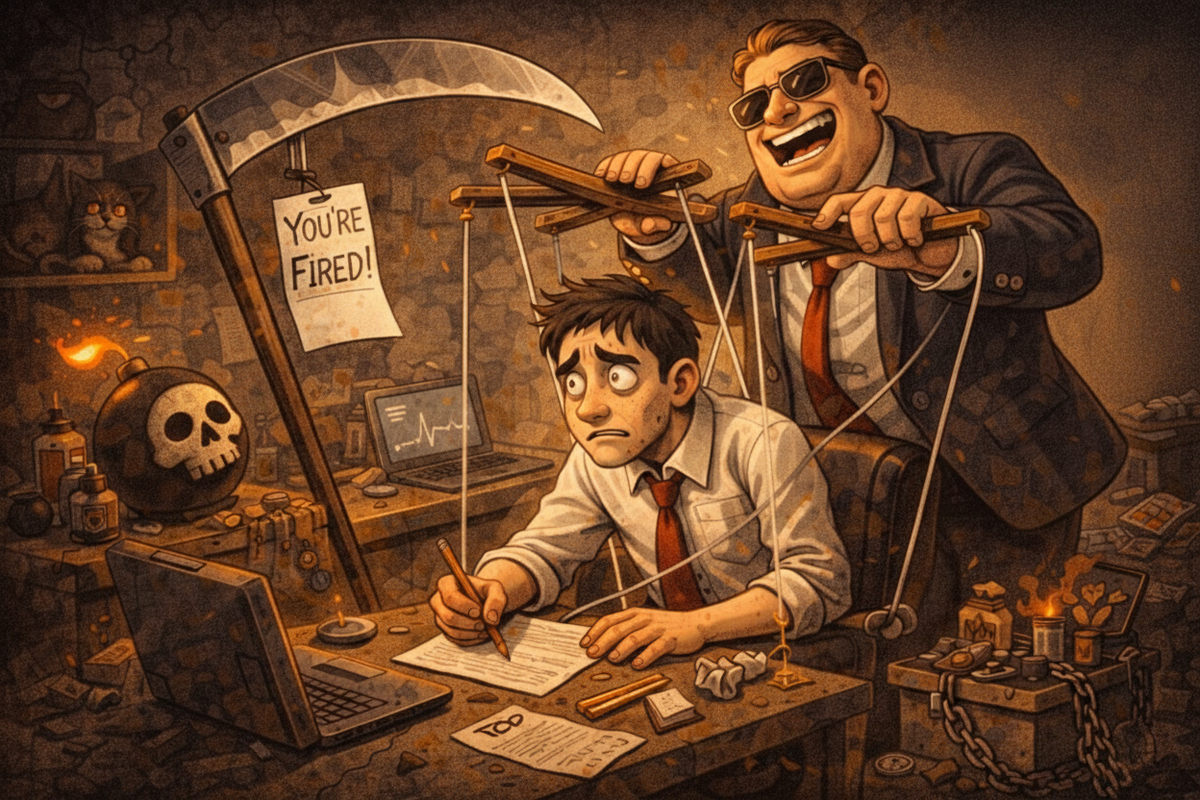 Один из самых распространённых инструментов давления на сотрудников. Работает безотказно — потому что бьёт в самое уязвимое: страх потерять стабильность, доход, статус. Страх после потери работы — нормальная человеческая реакция. Но когда этим страхом пользуются намеренно — это уже инструмент контроля, а не управления. Что такое манипуляция страхом увольнения Манипуляция — это когда работодатель использует угрозу потери работы не для улучшения ваших результатов, а чтобы держать вас в подчинении. Разница принципиальная. Законное предупреждение звучит конкретно: «Твой план выполнен на 60%, если ситуация не изменится — будем расставаться». Манипуляция — это туман: «Ну, ты сам понимаешь, как сейчас всё непросто...» Когда человек чувствует угрозу, мозг переключается в «режим выживания». Критическое мышление отключается, тревога нарастает, и человек начинает делать всё что угодно, лишь бы не потерять место. Именно это и нужно манипулятору. Распространённые тактики — узнаёте? Представьте: ме