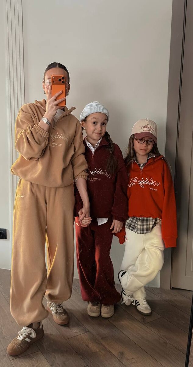 Тёплые флисовые костюмы и яркие акценты: выбор блогера Лии для себя и своих дочек