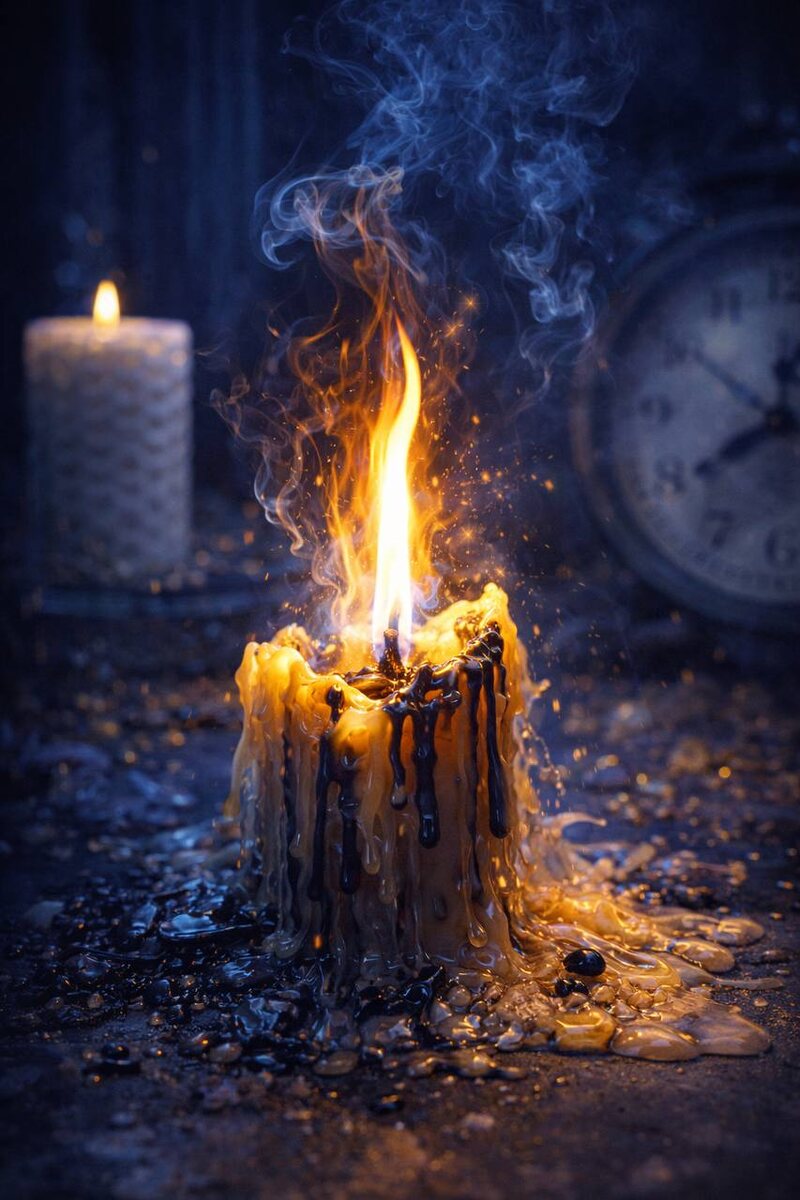 !» Когда ты зажигаешь обычную декоративную свечу, ты ждешь ровного, спокойного, даже медитативного горения. Но программная свеча — совсем другое дело. Это живой процесс трансформации. И иногда этот процесс ведет себя... непредсказуемо. Бывает так: свеча, которая, казалось бы, должна гореть долго, буквально «исчезает» за полчаса. Или начинает сильно коптить, «плакать» черными слезами, а то и вовсе гаснет без видимых причин. Стоит ли этого бояться? Нет. Это и диагностика и ответы на твои вопросы в реальном времени. Вот что могут значить такие «факапы»: 🔥 Слишком быстрое сгорание. Программа встретила мощное сопротивление или очень плотный слой негатива. Огонь включает «режим форсаж», чтобы пробить этот застой. Это значит, что запрос был максимально актуальным, и работа идет на пределе мощностей. 🔥 Свеча постоянно гаснет. Так часто проявляется внутреннее сопротивление или неготовность человека отпустить проблему. Поле как будто «защищает» старый привычный уклад, даже если