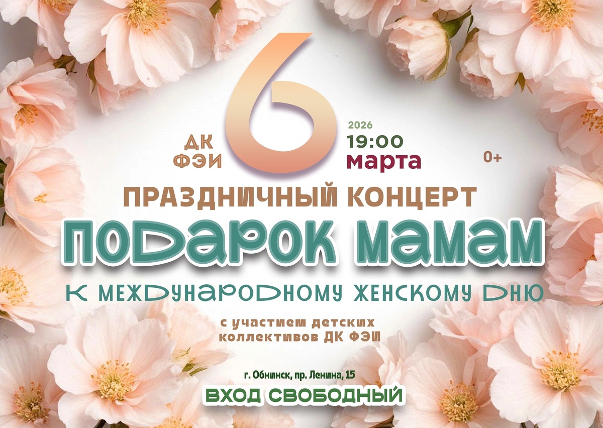 🎶6 марта в 19:00 в ДК ФЭИ пройдёт праздничный концерт «Подарок мамам