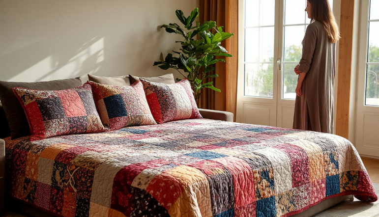 Наталья сшила своё первое покрывало из нежных розовых и бежевых отрезков. Всё получилось аккуратно, но результат её не радовал. Она вечерами рассматривала работу при лампе и никак не могла понять, почему полотно выглядит плоским