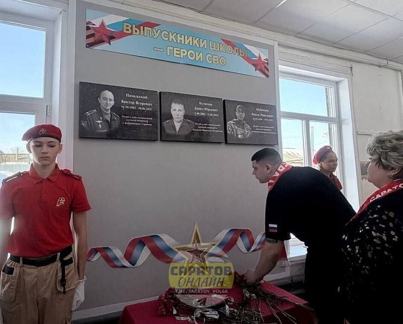 В городе Пугачеве Саратовской области увековечили имена участников специальной военной операции. Как рассказали в администрации муниципалитета, мемориальные доски Виктору Пахольскому, Данилу Кузнецову и Фаилю Абубекерову установили в школе № 4, выпускниками которой они были. В церемонии открытия памятных знаков приняли участие родные и близкие героев, одноклассники, представители общественных организаций, чиновники, бойцы СВО, педагоги и ученики образовательного учреждения. Память погибших почтили минутой молчания и возложили цветы. ▫️САРАТОВ ОНЛАЙН ▪️ЭНГЕЛЬС ОНЛАЙН 📲 Мы в мессенджере MAX