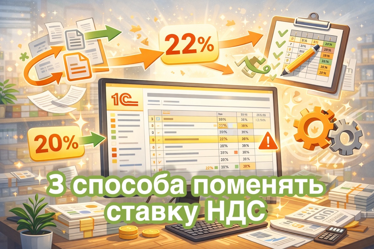 Я Иван, работаю с 1С больше 12 лет. Ниже дам три реально используемых способа массово заменить ставку НДС в номенклатуре. С пояснениями, когда какой выбирать, и где чаще всего люди подрываются.