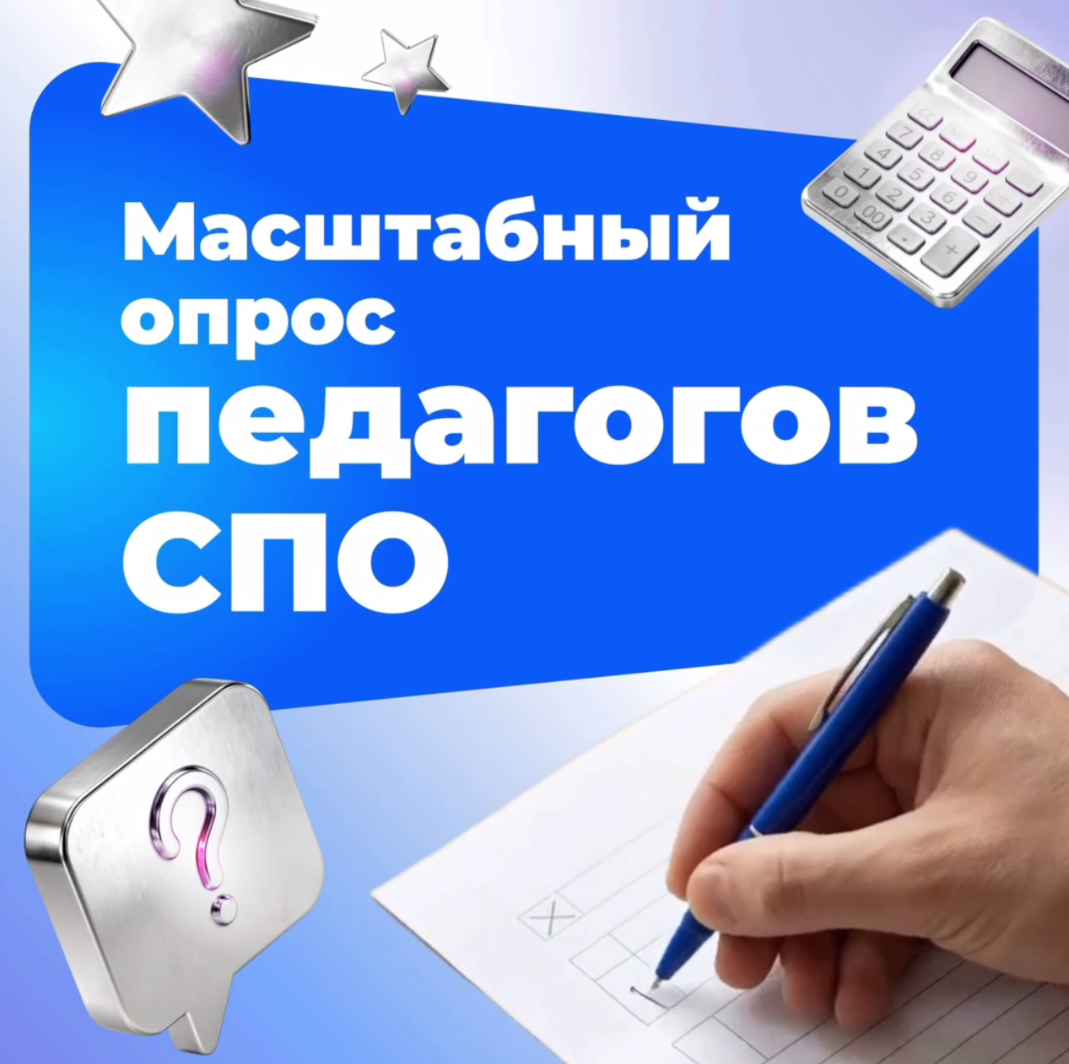 Институт развития профессионального образования запустил масштабный аналитический опрос. Цель исследования — изучить мнение преподавателей о своей профессиональной деятельности в условиях обновления государственных требований к подготовке кадров. Опрос проходит в онлайн-формате — и в нем уже приняли участие больше 5 тысяч педагогов. Присоединяйтесь! Ваш опыт и профессиональный взгляд помогут сделать систему СПО лучше!